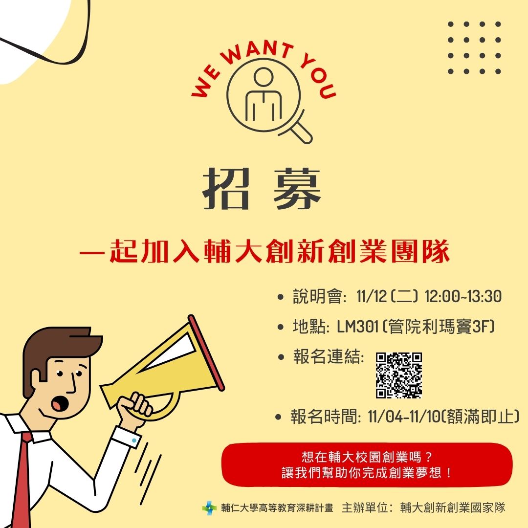「創新創業國家隊」將招募充滿創新創業熱情的師生團隊,自組團隊開創事業,或者實地探訪企業找出痛點與需求,積極輔導在地企業開創永續新商機。