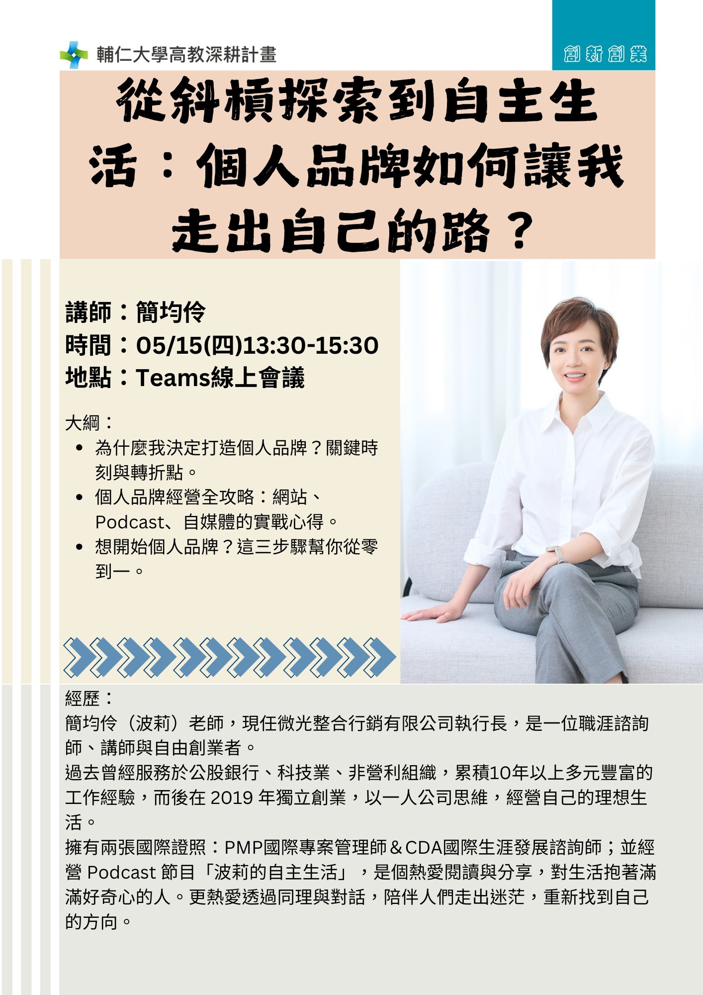 🔸主講人:Podcast 節目「波莉的自主生活」 簡均伶