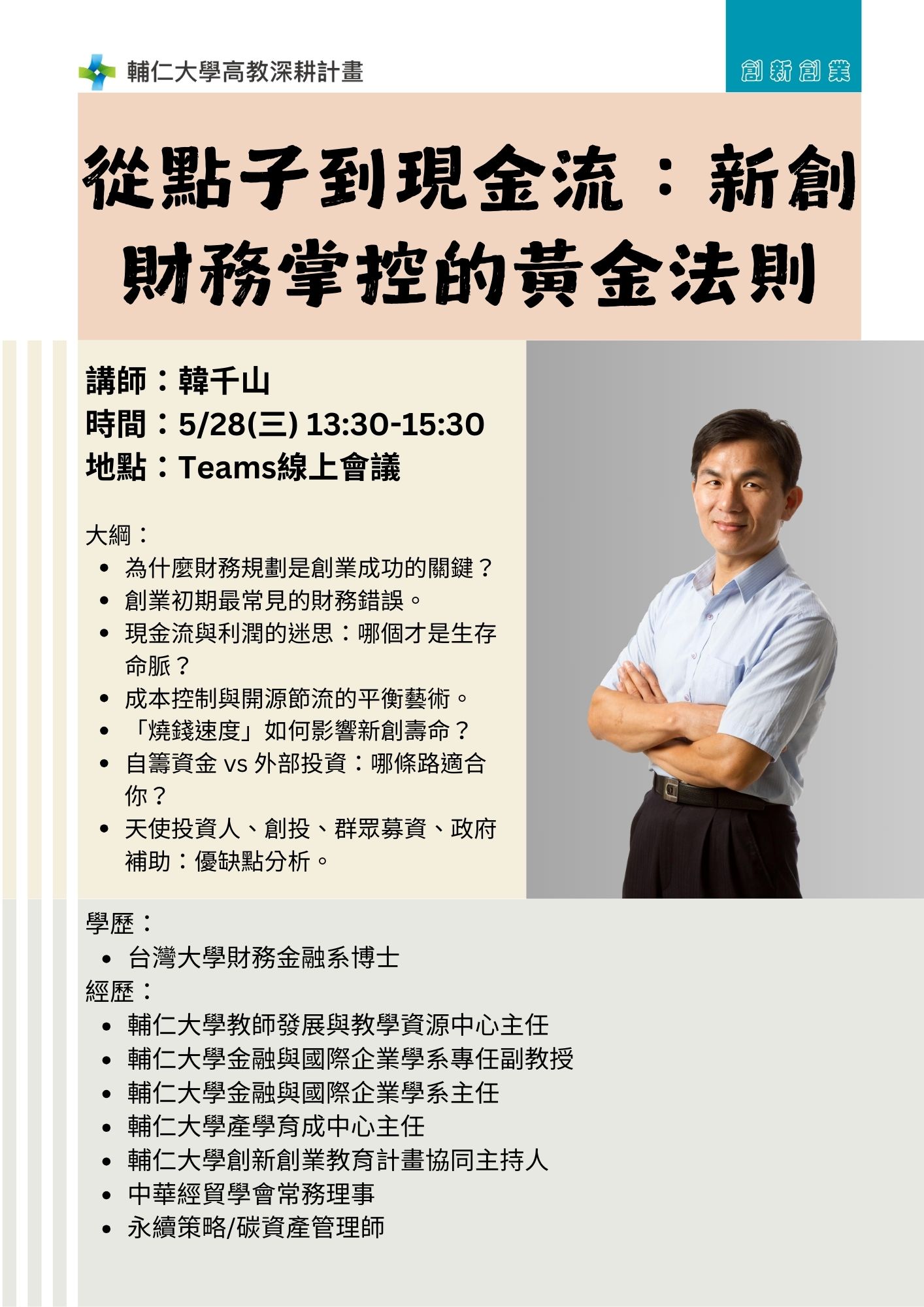 🔸主講人:教師發展與教學資源中心韓千山主任(金融與國際企業學系專任副教授)