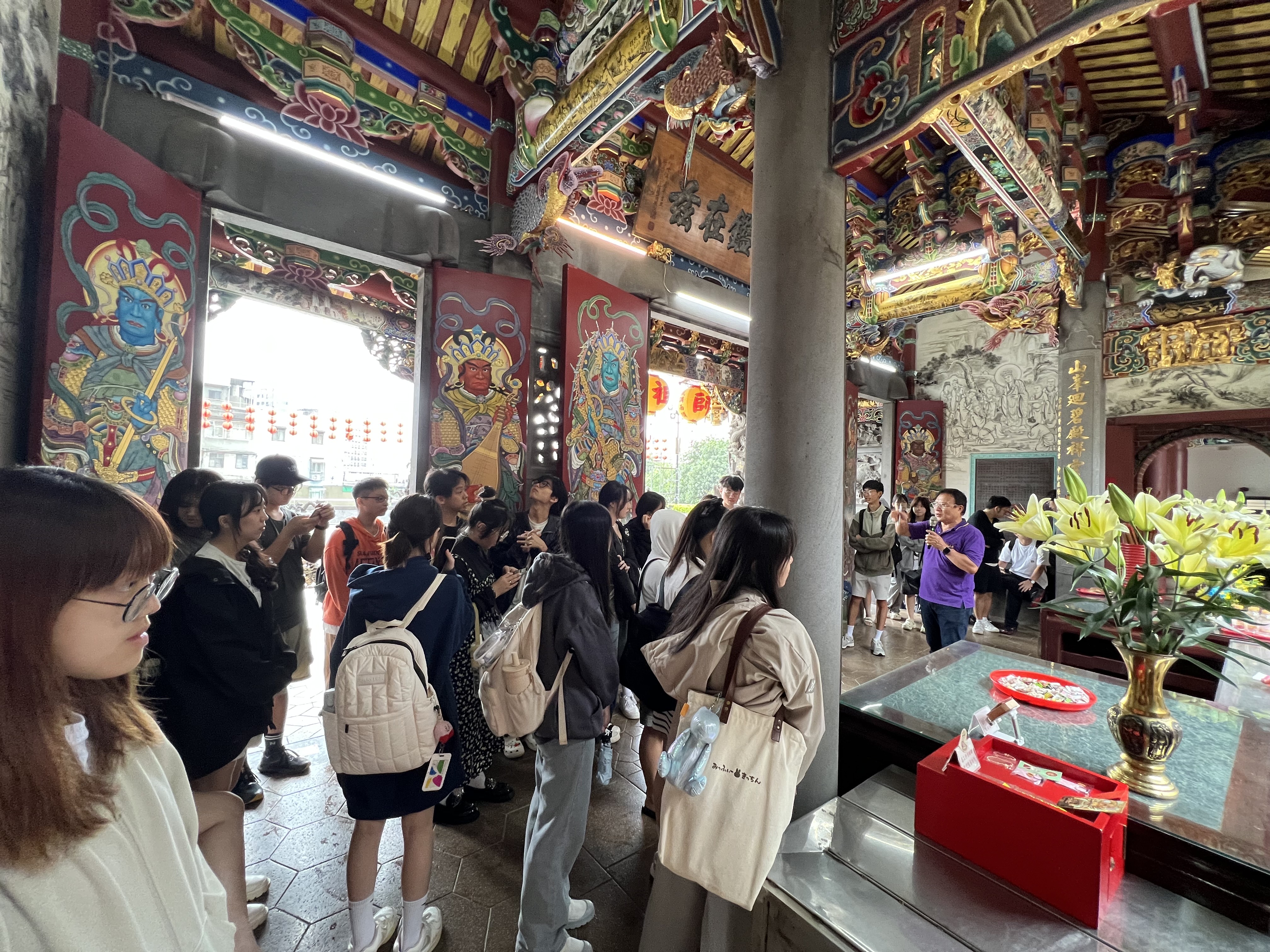 「敘事分析與表達」課程由陳恬儀老師帶領學生前往泰山巖進行校外教學,結合塭仔圳地區的歷史發展與信仰空間作為敘事分析的田野場域。透過實地踏查,學生從塭仔圳周邊聚落形成、水圳文化與地方信仰脈絡出發,觀察泰山巖在地方生活與集體記憶中的角色,並將田野經驗轉化為敘事素材與文本分析,深化對塭仔圳地方文化脈絡的理解,實踐課程所強調之敘事能力與在地連結。