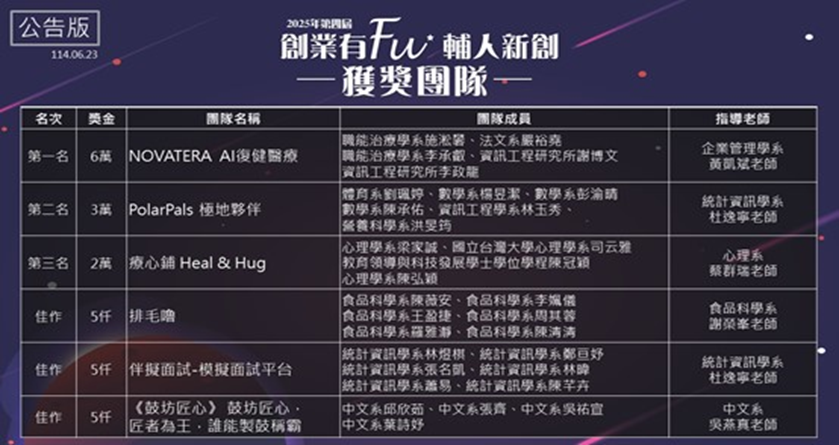 1.5門課;264人次修課。 2. 113學年度4人次;114學年度5人次。 |