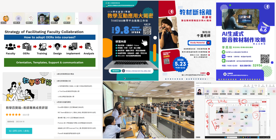 (2)本年度辦理 12 場教師數位教學研習,以增強教師數位教學力,共計 734 人次參與,平均滿意度達 95%。