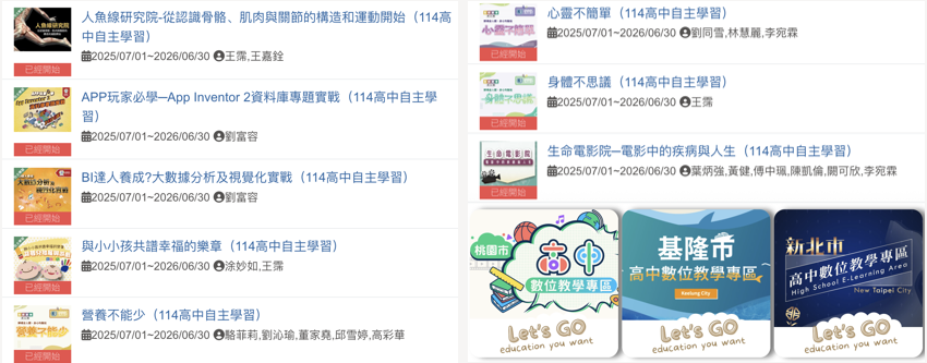 (2)共有 8 門磨課師課程被納入高中自主學習清單,向下經營國高中生自主學習市場、拓展高品質遠距課程在校際,打破學習疆界,達到教育共享的精神。