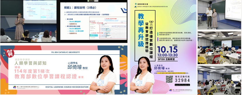 (1)輔導 2 門課程通過教育部數位學習課程認證,也邀請通過認證教師分享如何一步步打造優質課程、數位認證資料準備關鍵秘訣與方法,期望鼓舞更多教師往認證方向前進,設計更優質的數位課程。
