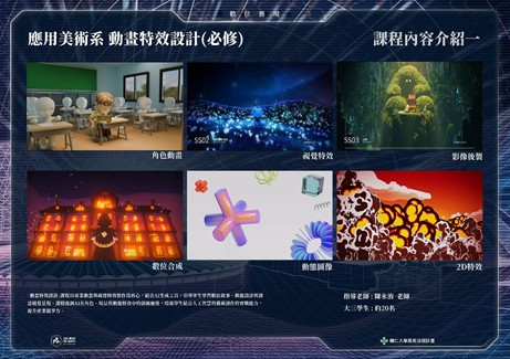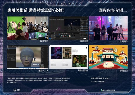- 應用美術學系:在「設計與行銷」課程中,著重於沉浸式虛擬連線互動計畫,利用 AI 分析市場趨勢,進行品牌建立、社交媒體行銷及個性化行銷。